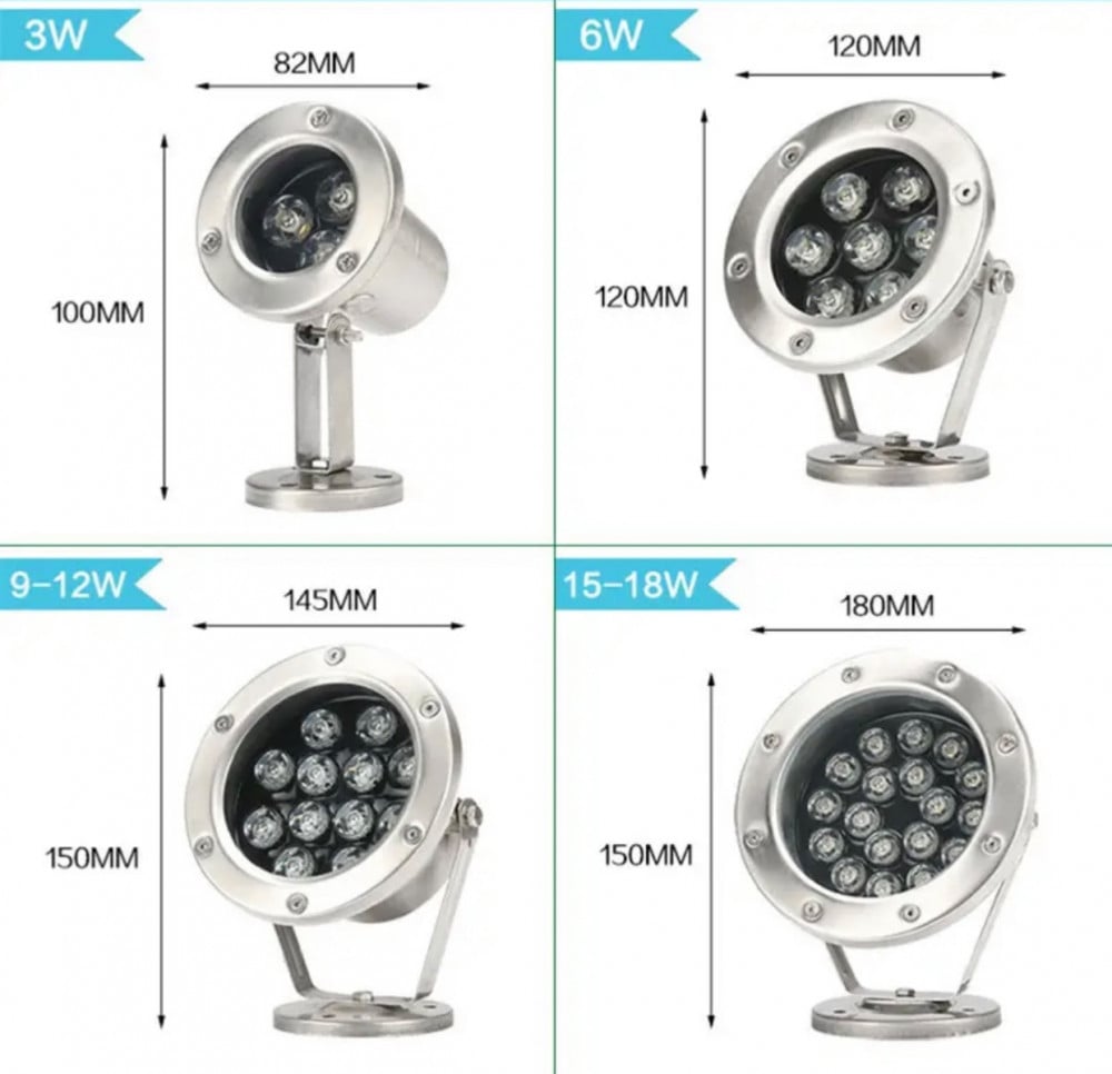 كشاف انارة مجوف LED 3/4 بوصة متعدد الألوان9 وات مع محول 12 فولت